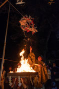 神前に設けられた釜の装置に、神様を招き鎮める神事で、神様の御神慮により、ウオーンという力強い鳴動が起きます。しかし、神様のご都合によっては、全く鳴動が起きない場合もあるので、非常に真剣なお祈りの方法です。